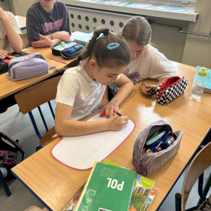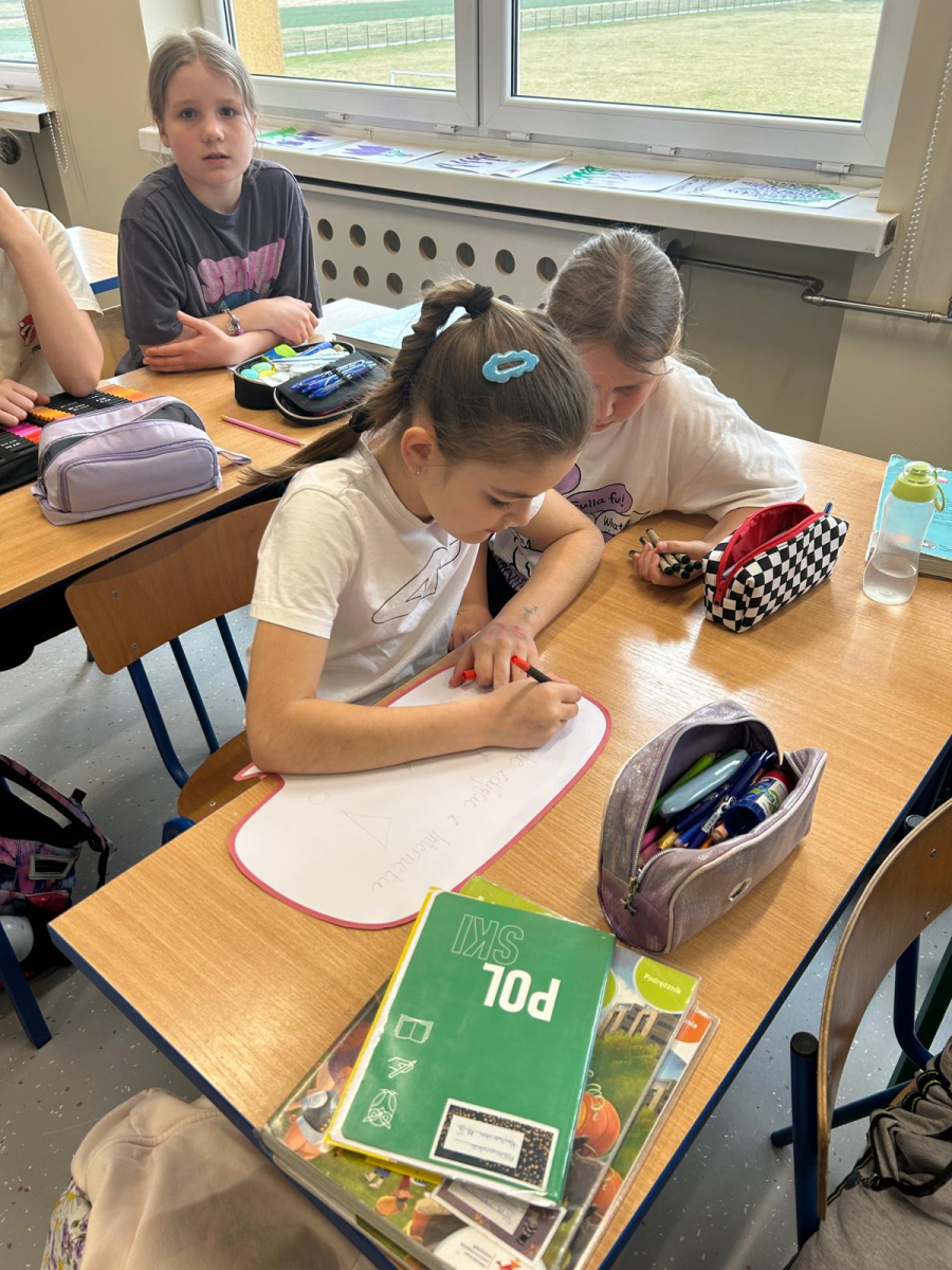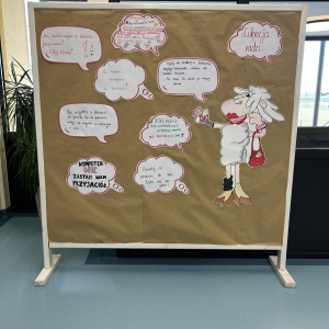 Po zakończeniu pracy wszyscy spotkaliśmy się przy plakacie owcy Lukrecji i wspólnie odczytaliśmy przygotowane hasła. Był to moment refleksji i podsumowania wspólnych działań.