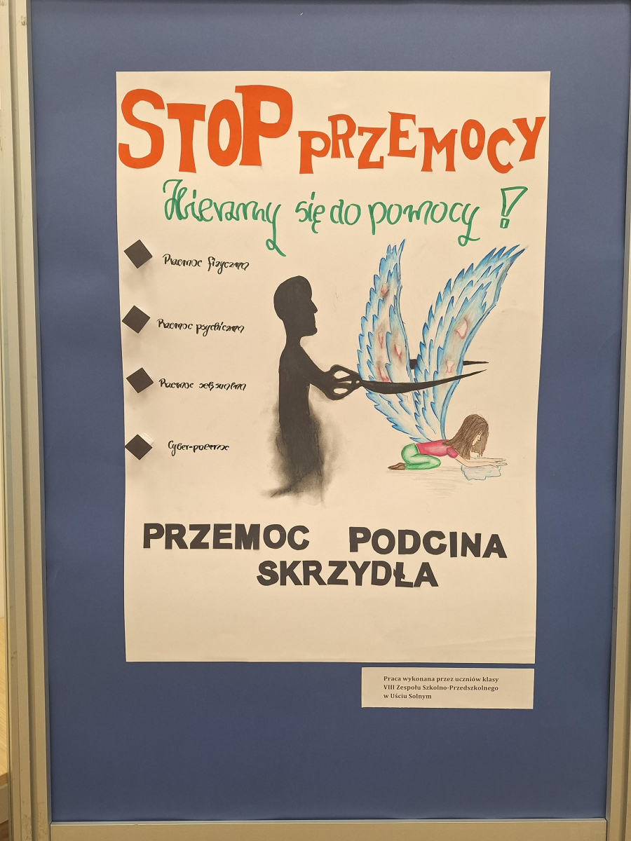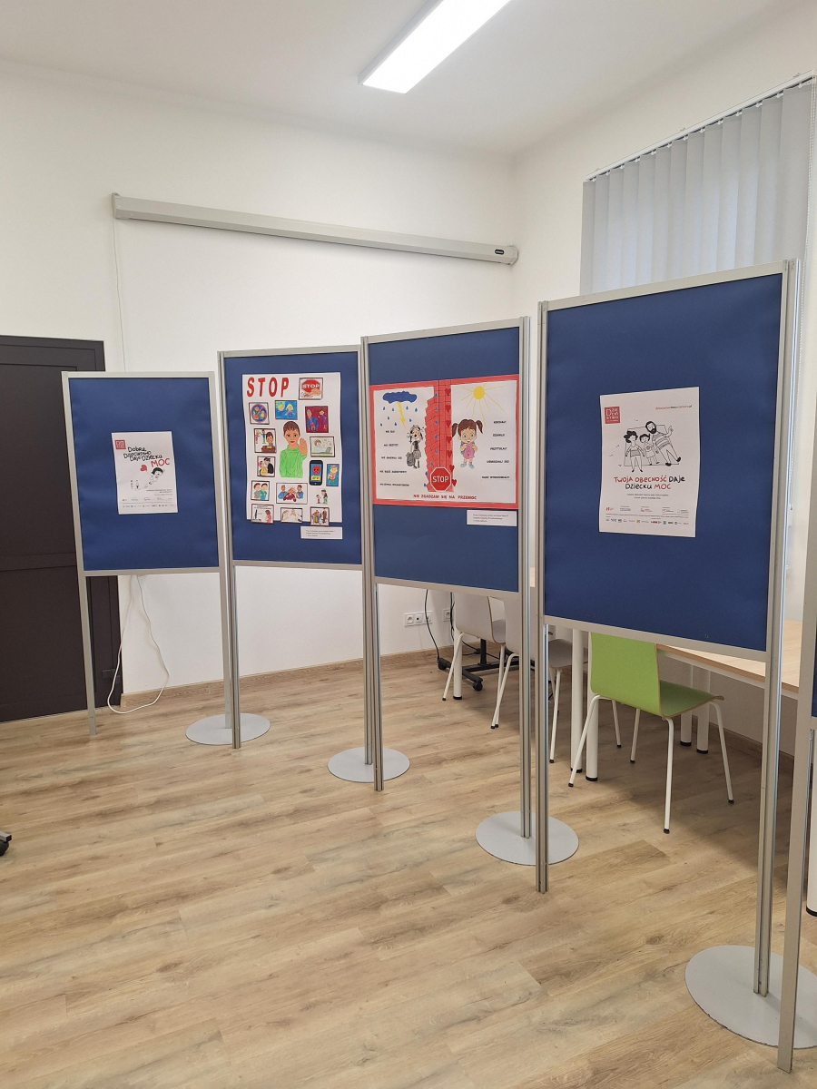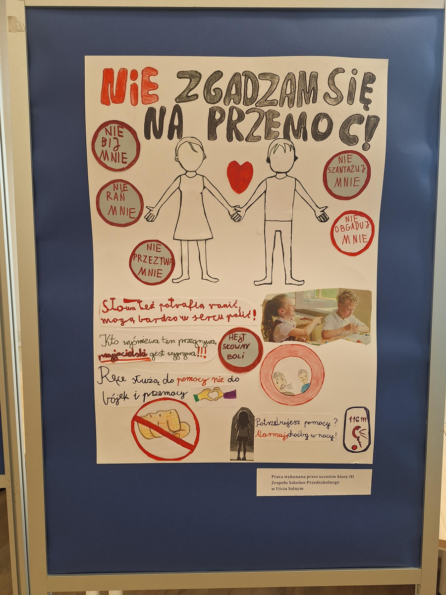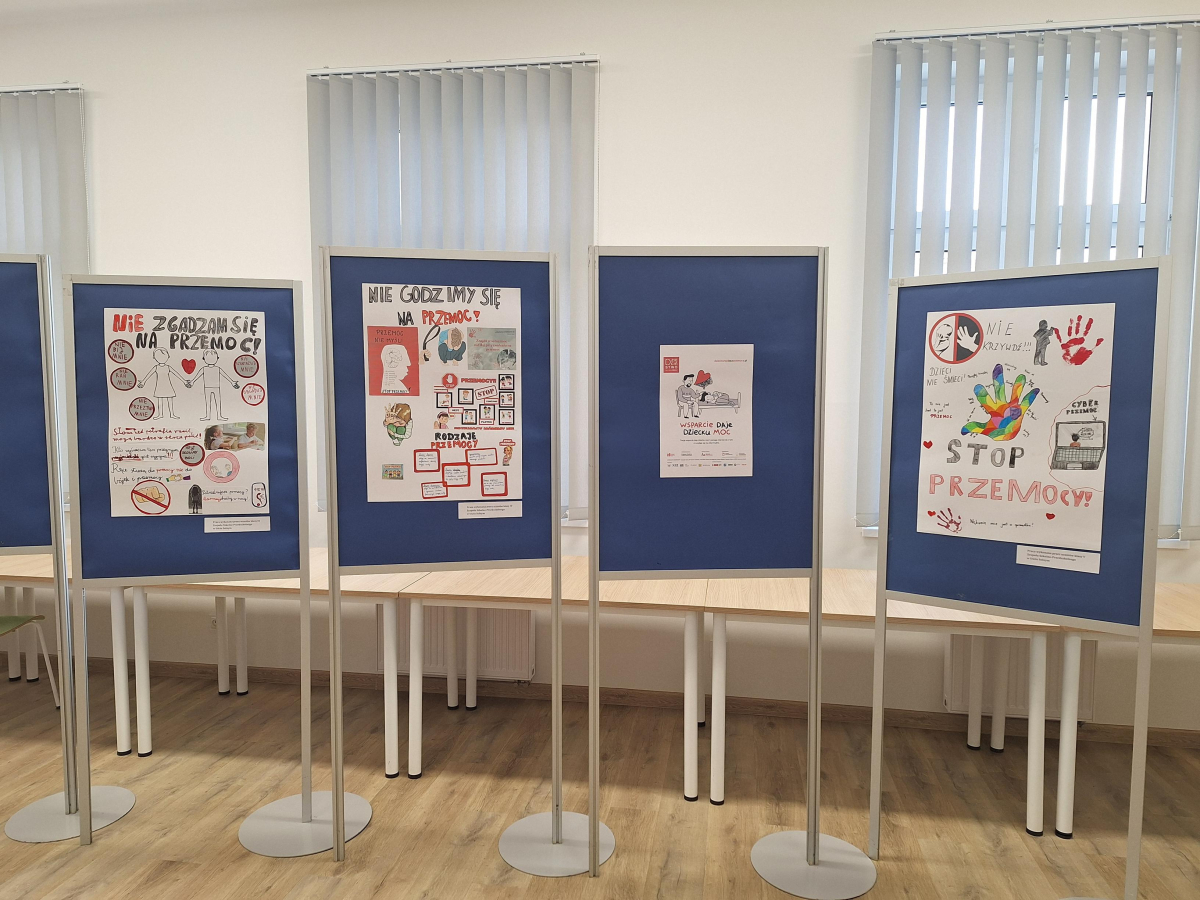 Zgromadzone plakaty posłużyły do stworzenia wyjątkowej ekspozycji pt. „Wystawa, która daje do myślenia”, którą zaprezentowano w Bibliotece Publicznej w Uściu Solnym. Oprócz prac uczniów, na wystawie znalazły się także informacje przybliżające cele kampanii „Dzieciństwo bez przemocy” oraz działalność Fundacji Dajmy Dzieciom Siłę.