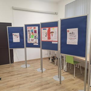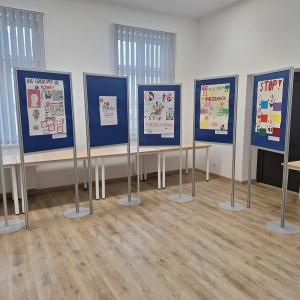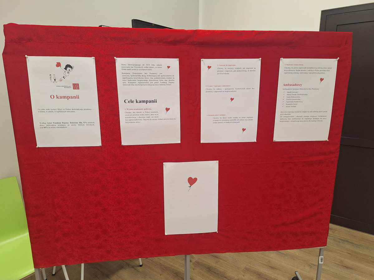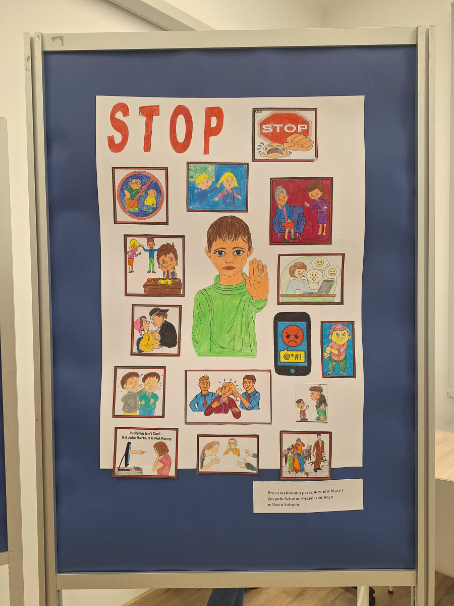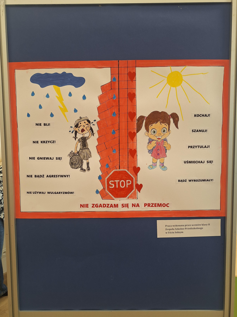 Zgromadzone plakaty posłużyły do stworzenia wyjątkowej ekspozycji pt. „Wystawa, która daje do myślenia”, którą zaprezentowano w Bibliotece Publicznej w Uściu Solnym. Oprócz prac uczniów, na wystawie znalazły się także informacje przybliżające cele kampanii „Dzieciństwo bez przemocy” oraz działalność Fundacji Dajmy Dzieciom Siłę.