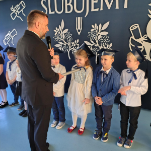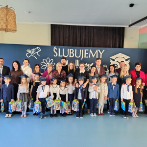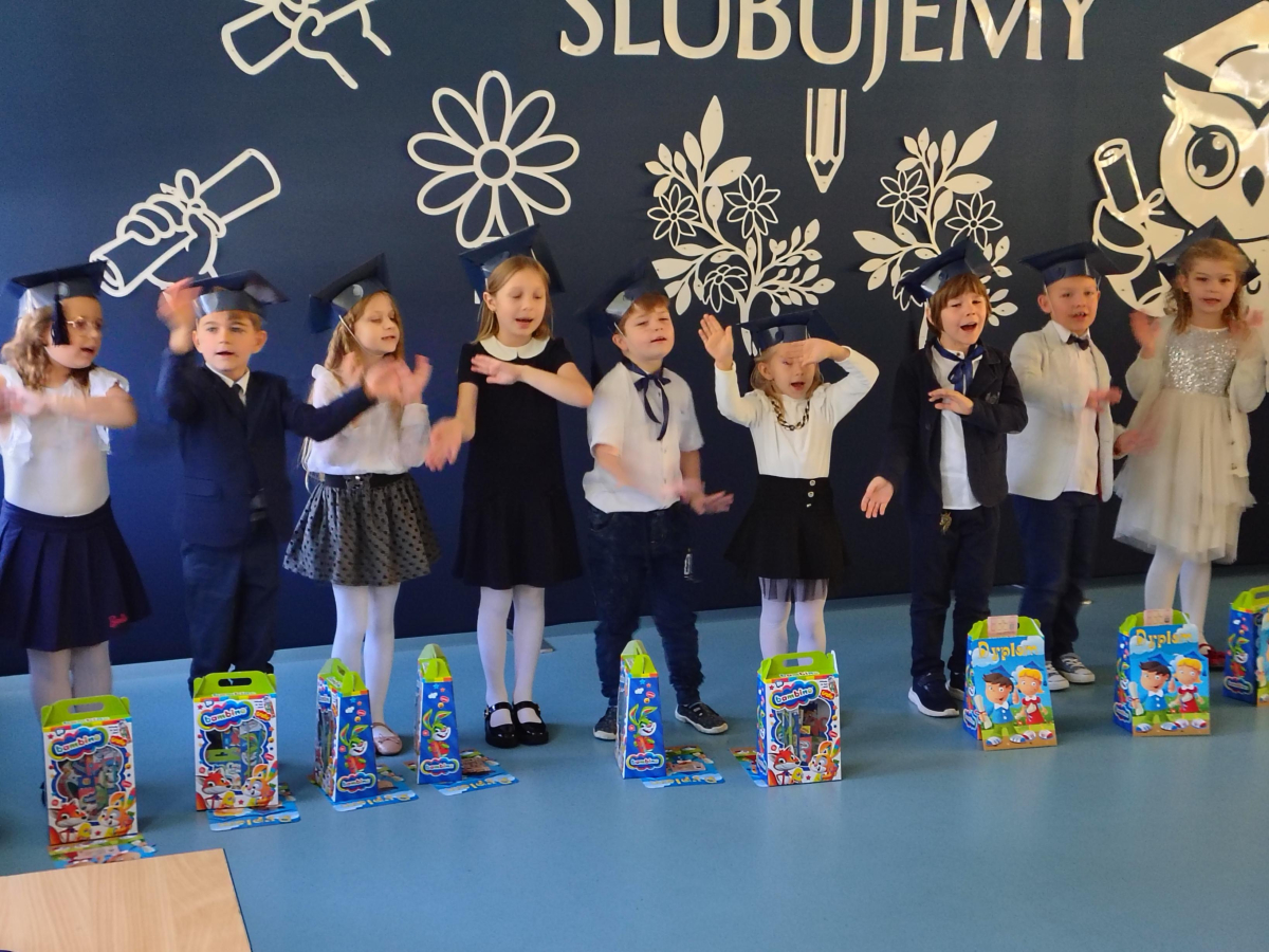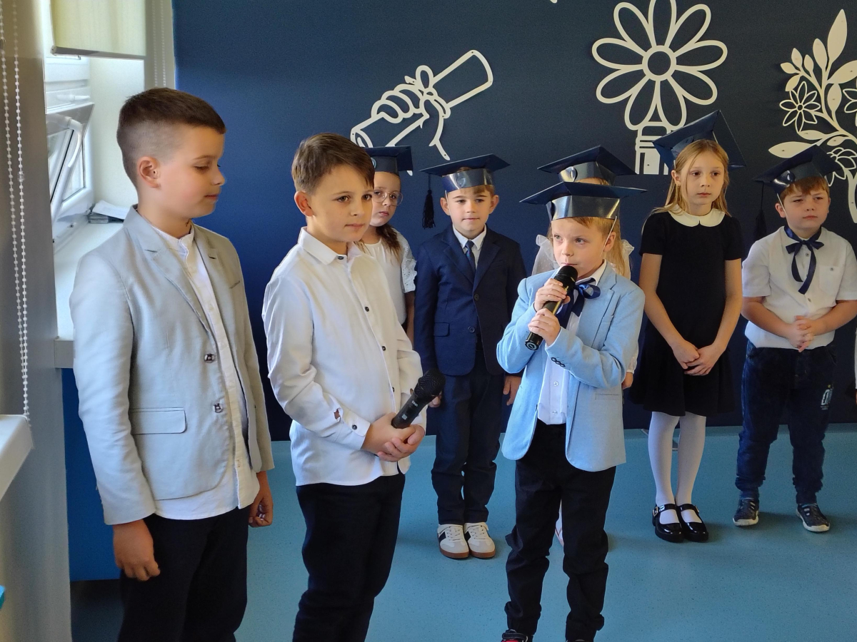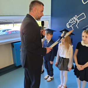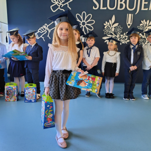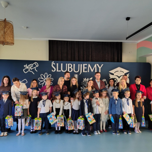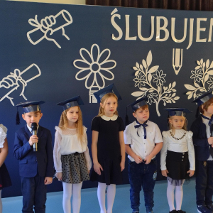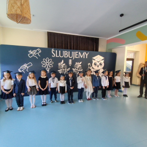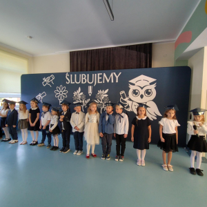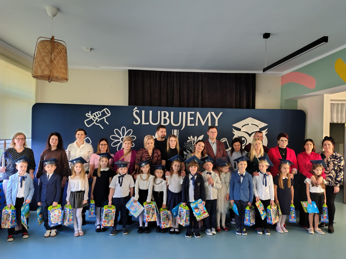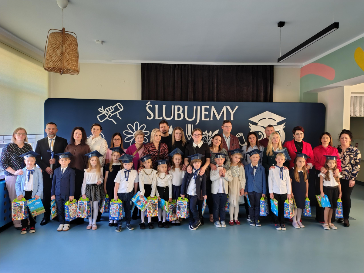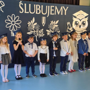 Dnia 16.10.2025 roku swoją uroczystość obchodzili uczniowie klasy pierwszej. Zostali wówczas pasowani na pełnoprawnych uczniów naszej szkoły. Podczas uroczystej akademii nasi pierwszoklasiści uroczyście ślubowali być wzorowymi uczniami, dbać o dobre imię szkoły, pomagać słabszym od siebie oraz sumiennie wykonywać swoje obowiązki. Początkowo jednak musieli zdać egzamin przed rodzicami, nauczycielami, panem dyrektorem oraz starszymi kolegami. Zaprezentowali piosenki w języku angielskim, rymowanki związane z alfabetem oraz znajomością liczb. Zapewnili wszystkich, że zasady właściwego zachowania nie są im obce oraz obiecali, że będą się do nich stosować. Rozwiązali zagadki tematyczne, a tym samym przekonali wszystkich, że zasługują na bycie uczniami naszej szkoły.