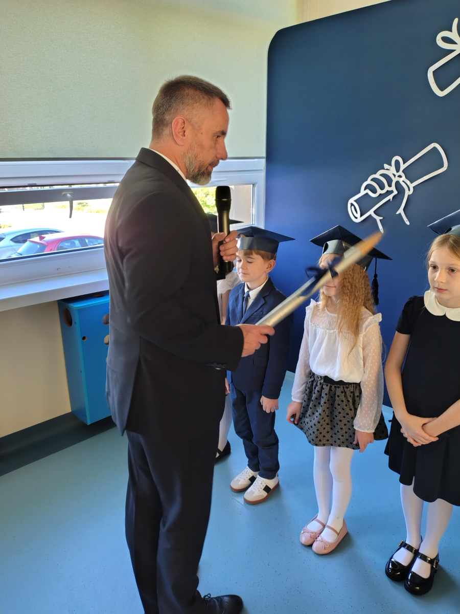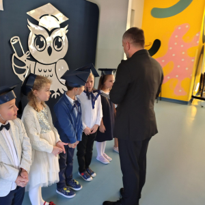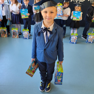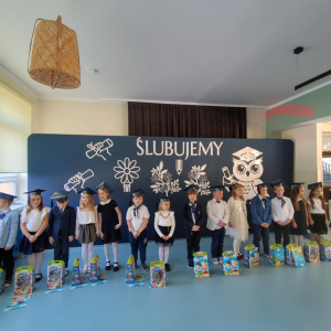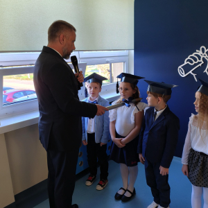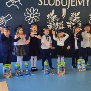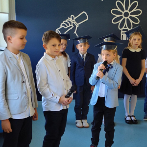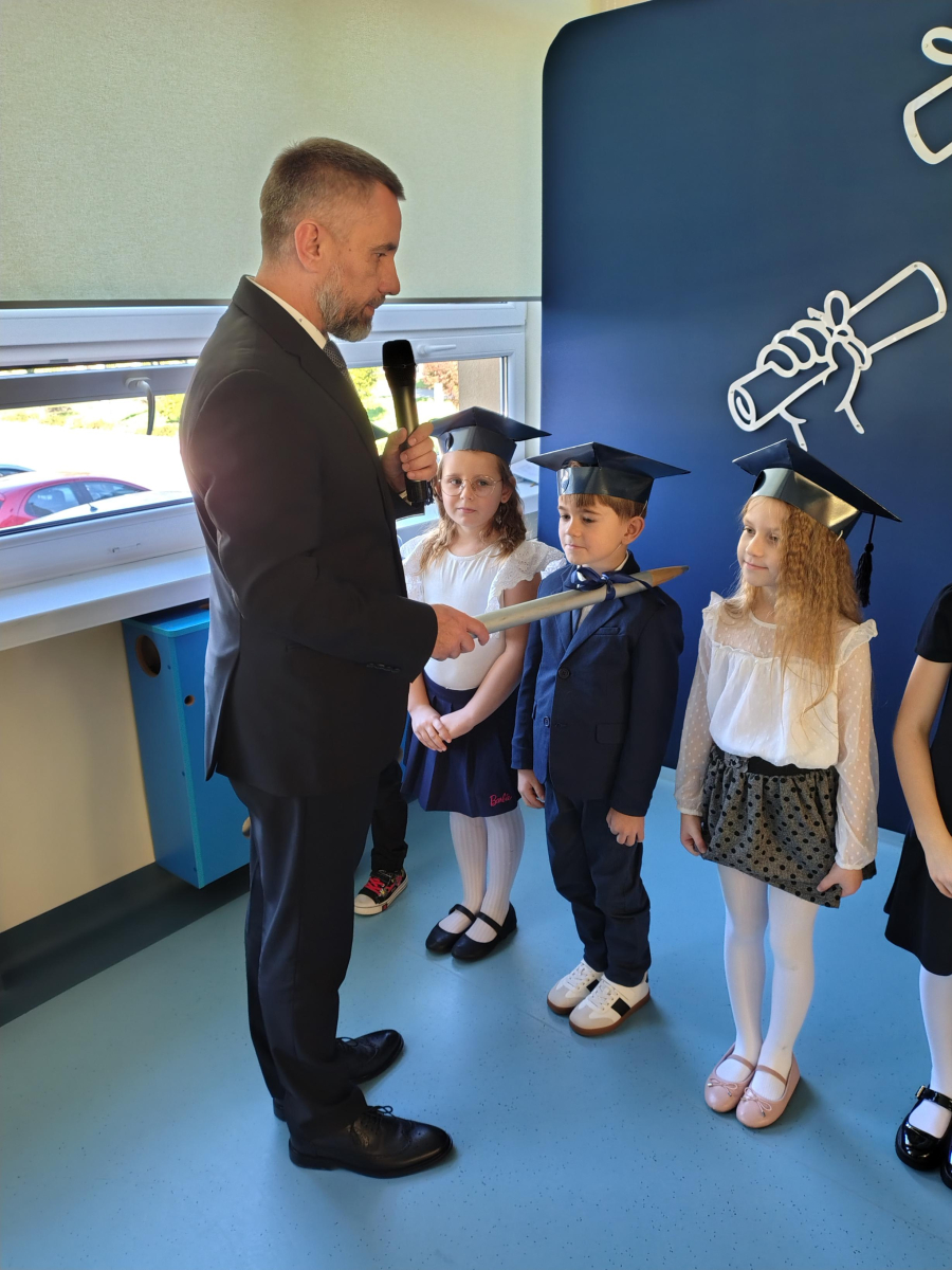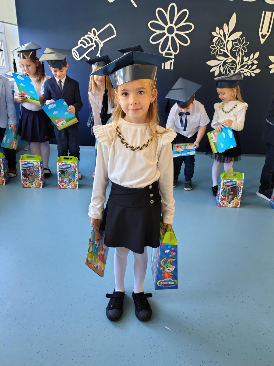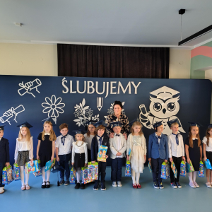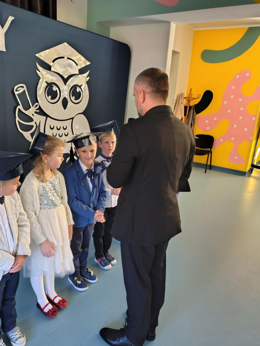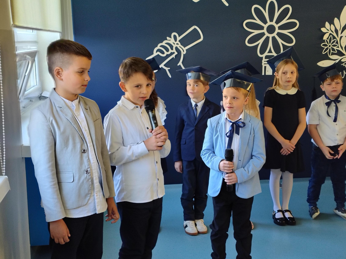Dnia 16.10.2025 roku swoją uroczystość obchodzili uczniowie klasy pierwszej. Zostali wówczas pasowani na pełnoprawnych uczniów naszej szkoły. Podczas uroczystej akademii nasi pierwszoklasiści uroczyście ślubowali być wzorowymi uczniami, dbać o dobre imię szkoły, pomagać słabszym od siebie oraz sumiennie wykonywać swoje obowiązki. Początkowo jednak musieli zdać egzamin przed rodzicami, nauczycielami, panem dyrektorem oraz starszymi kolegami. Zaprezentowali piosenki w języku angielskim, rymowanki związane z alfabetem oraz znajomością liczb. Zapewnili wszystkich, że zasady właściwego zachowania nie są im obce oraz obiecali, że będą się do nich stosować. Rozwiązali zagadki tematyczne, a tym samym przekonali wszystkich, że zasługują na bycie uczniami naszej szkoły.