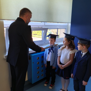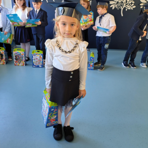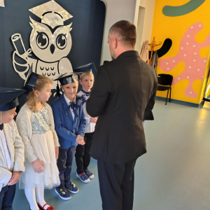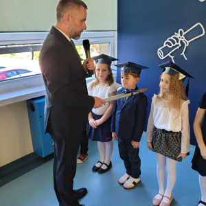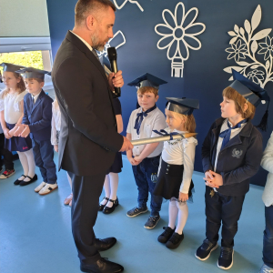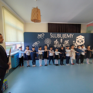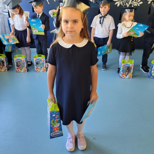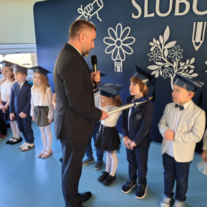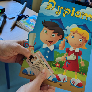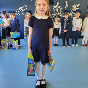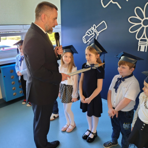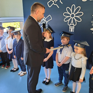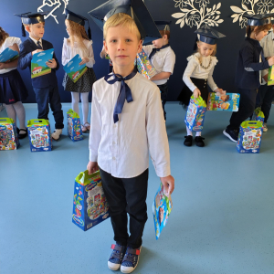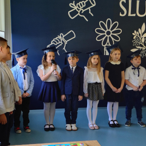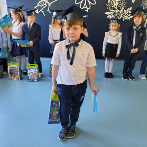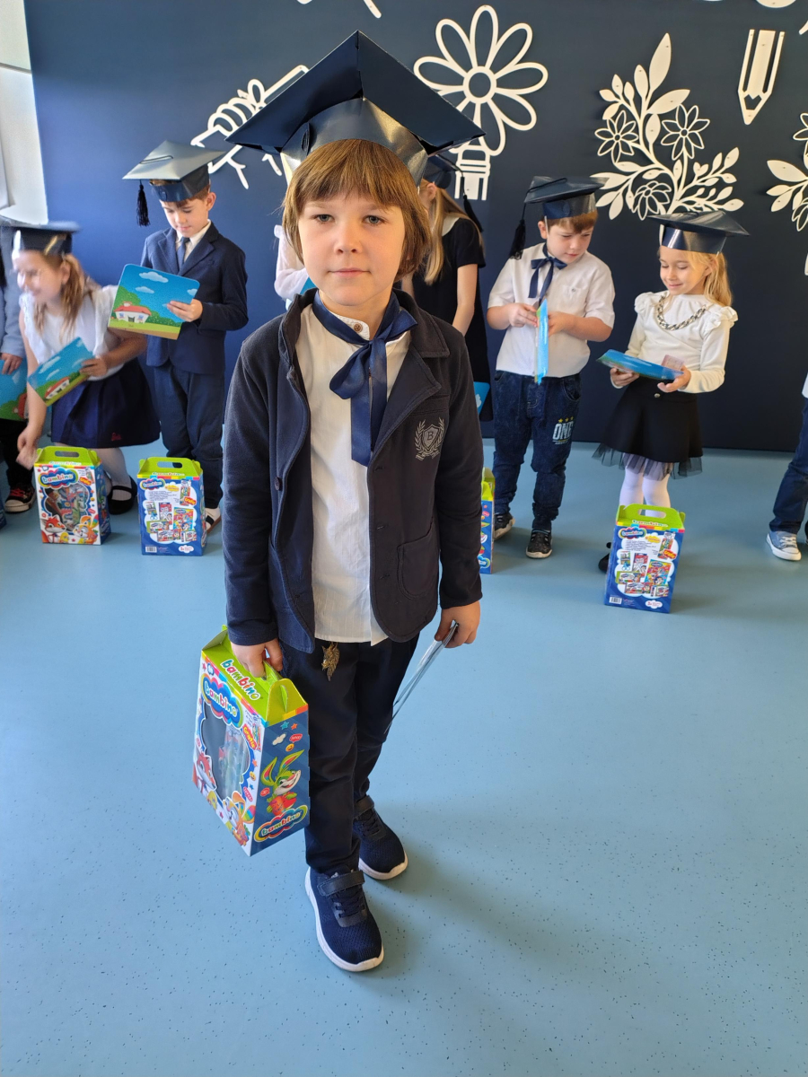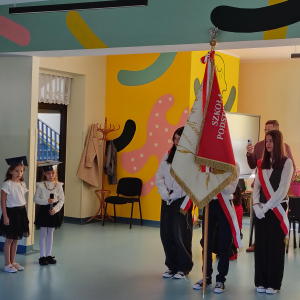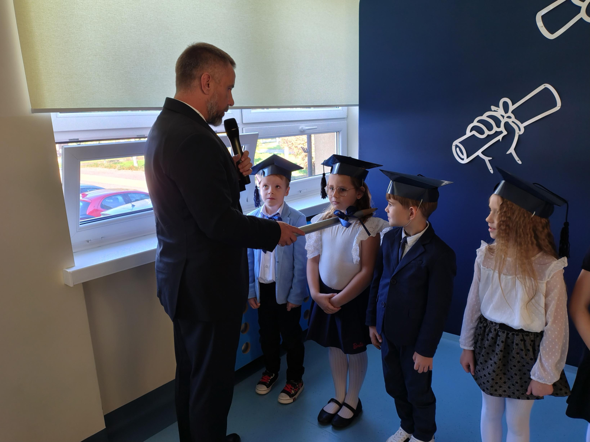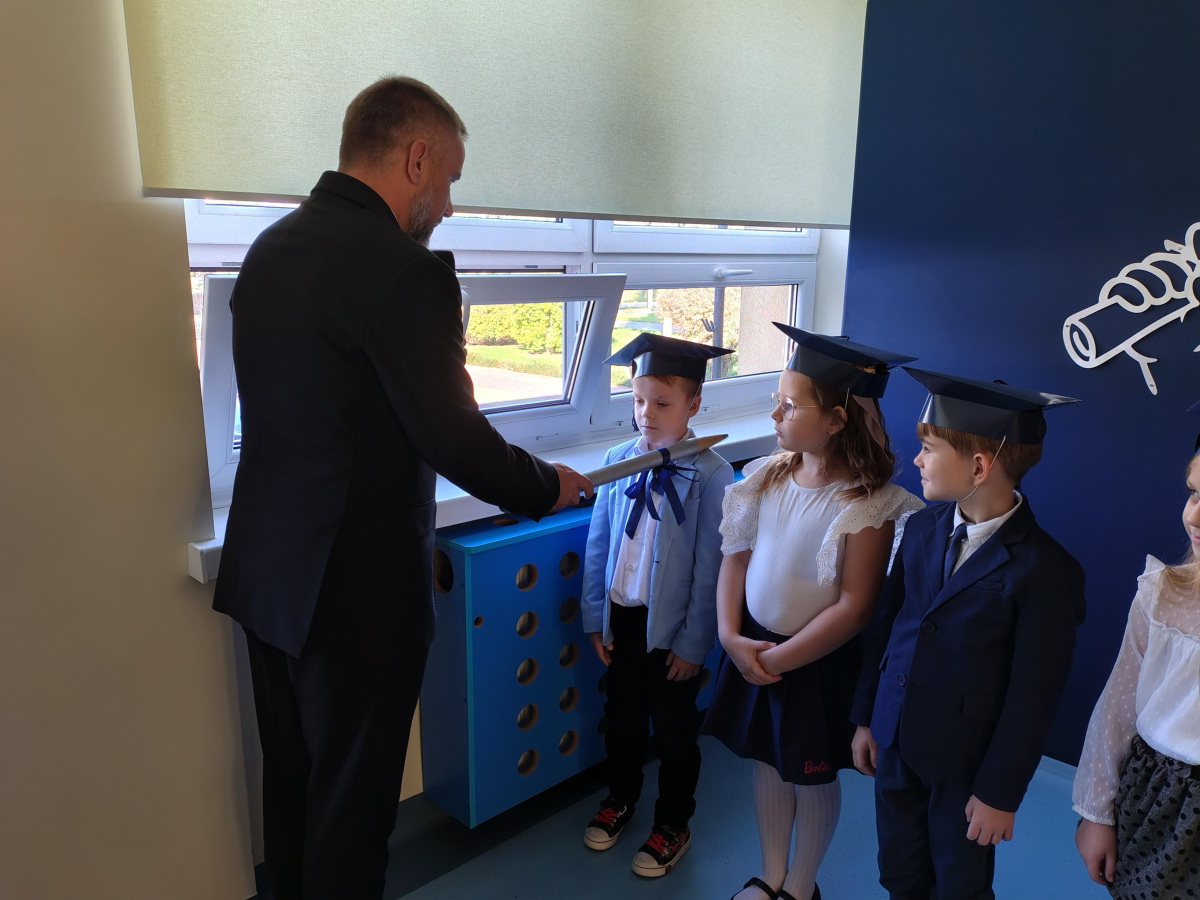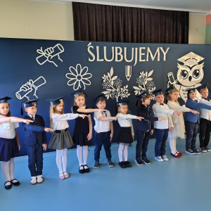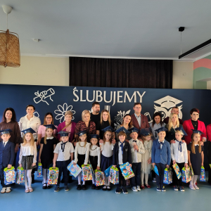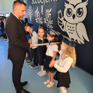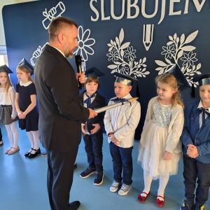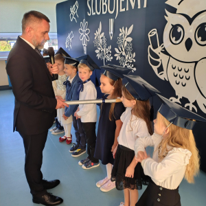 Dnia 16.10.2025 roku swoją uroczystość obchodzili uczniowie klasy pierwszej. Zostali wówczas pasowani na pełnoprawnych uczniów naszej szkoły. Podczas uroczystej akademii nasi pierwszoklasiści uroczyście ślubowali być wzorowymi uczniami, dbać o dobre imię szkoły, pomagać słabszym od siebie oraz sumiennie wykonywać swoje obowiązki. Początkowo jednak musieli zdać egzamin przed rodzicami, nauczycielami, panem dyrektorem oraz starszymi kolegami. Zaprezentowali piosenki w języku angielskim, rymowanki związane z alfabetem oraz znajomością liczb. Zapewnili wszystkich, że zasady właściwego zachowania nie są im obce oraz obiecali, że będą się do nich stosować. Rozwiązali zagadki tematyczne, a tym samym przekonali wszystkich, że zasługują na bycie uczniami naszej szkoły.
