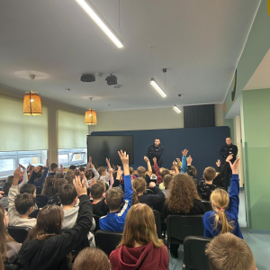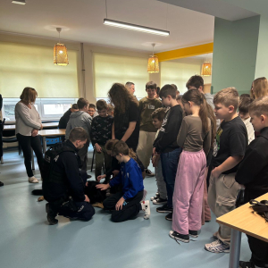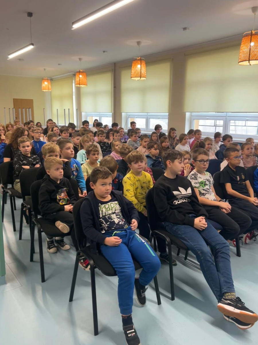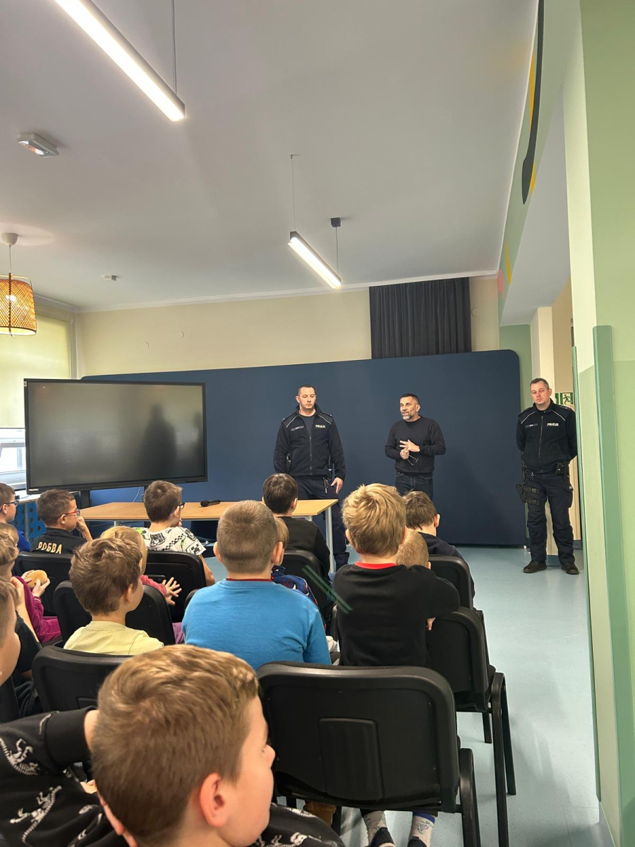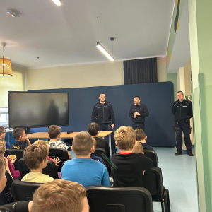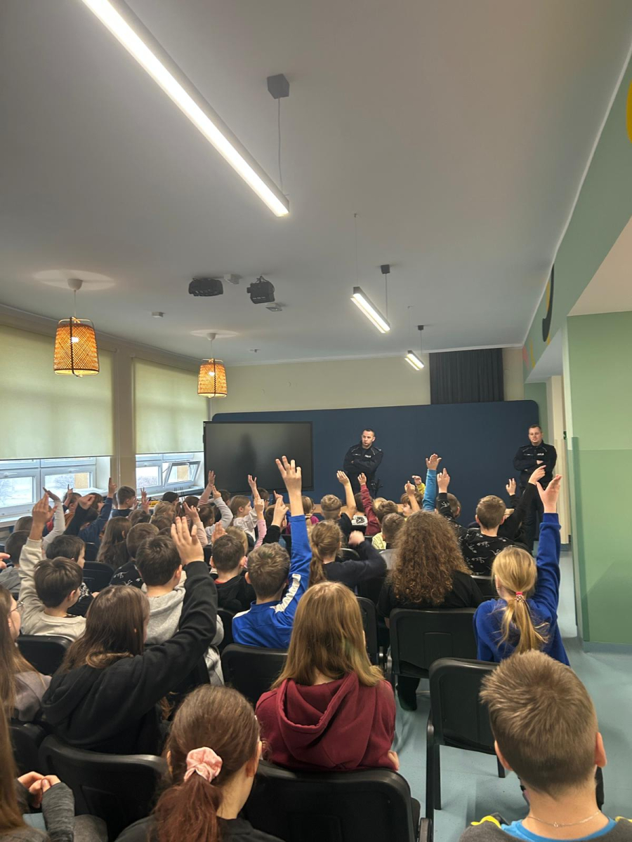 16 grudnia odbyło się spotkanie z policjantami, którzy wygłosili prelekcje na temat bezpieczeństwa. Poruszono zagadnienia dotyczące bezpieczeństwa w drodze do szkoły, prawidłowego wyposażenia roweru, znaczenia noszenia odblasków przez pieszych, a także zmian w przepisach dotyczących obowiązku noszenia kasku podczas jazdy na rowerze oraz hulajnodze elektrycznej. Omówiono również zasady poruszania się po drodze hulajnogą elektryczną.