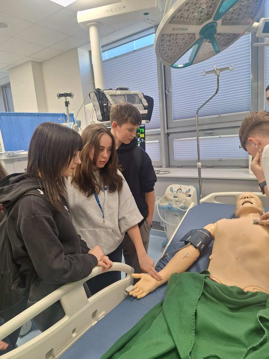 Następnie uczniowie odwiedzili Uniwersytet Frycza Modrzejewskiego, gdzie wysłuchali krótkiego wykładu, a także mieli okazję bliżej poznać wybrane wydziały uczelni, w tym aktorski i lekarski. Była to doskonała okazja do poszerzenia wiedzy oraz zdobycia inspiracji dotyczących dalszej edukacji.