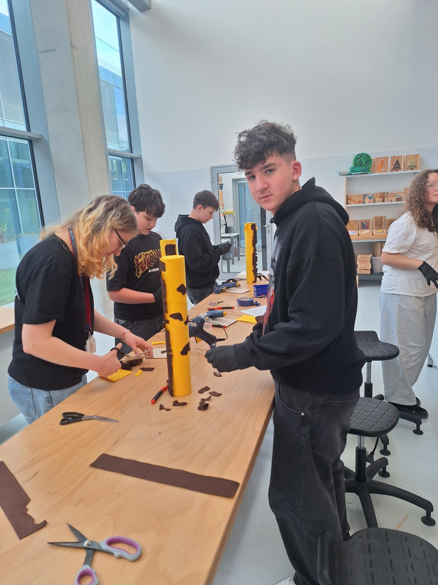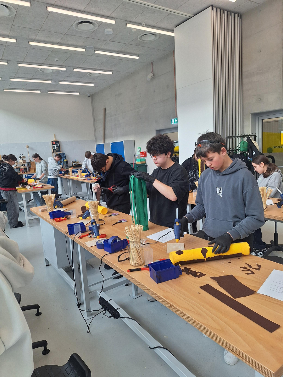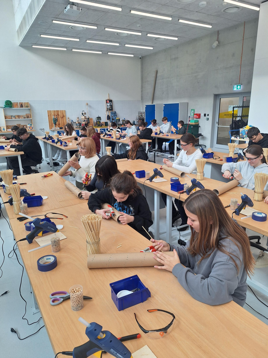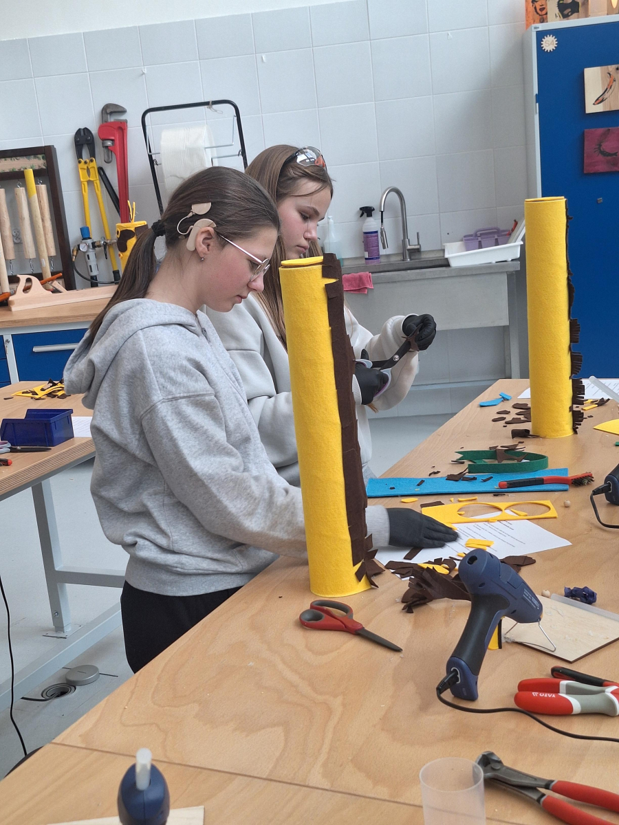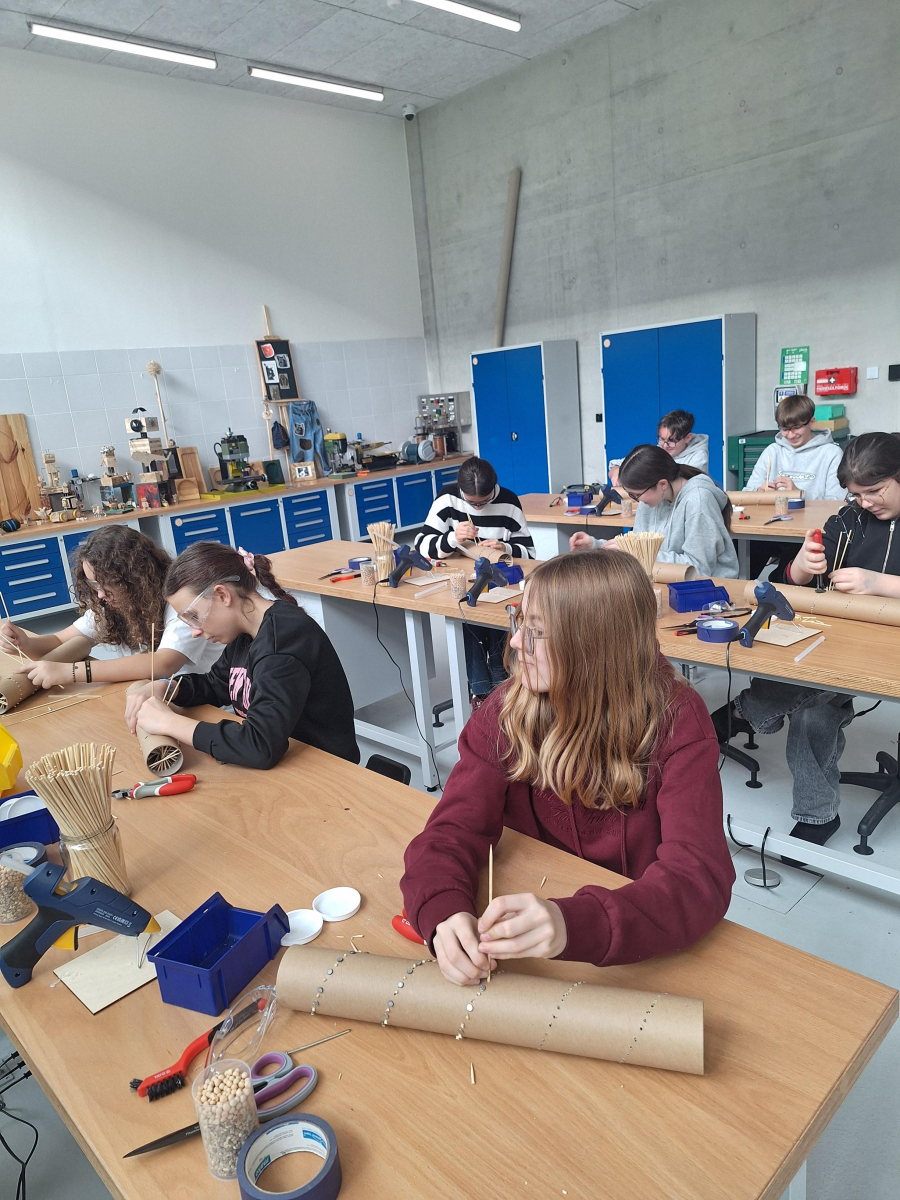 W Pracowni Techniki, na warsztatach „Muzyczny zwierz”, uczniowie samodzielnie wykonali kij deszczowy – instrument muzyczny inspirowany tradycyjnymi narzędziami dźwiękowymi. Podczas pracy rozwijali zdolności manualne, kreatywność i wrażliwość muzyczną, a także poznali zasady powstawania dźwięku.