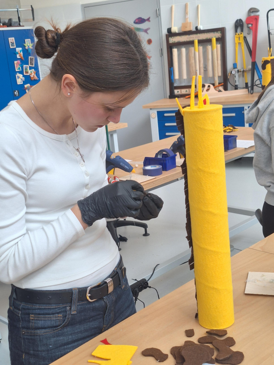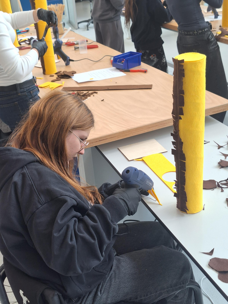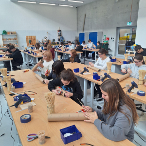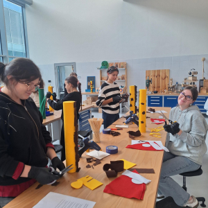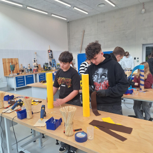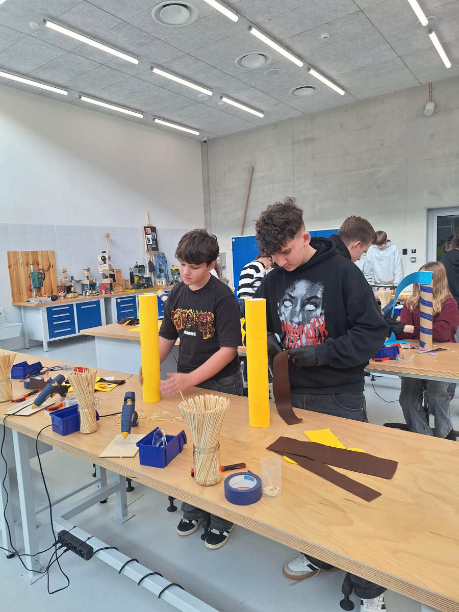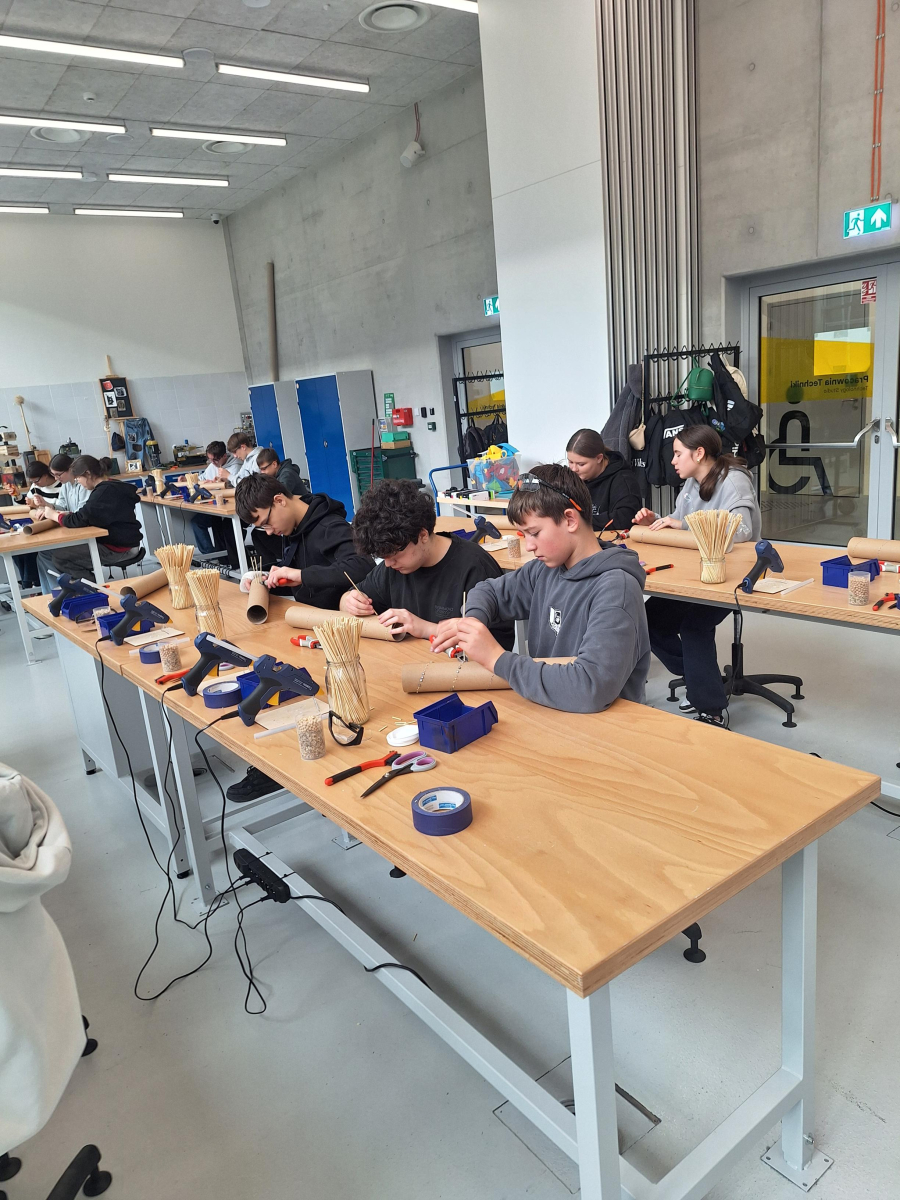 W Pracowni Techniki, na warsztatach „Muzyczny zwierz”, uczniowie samodzielnie wykonali kij deszczowy – instrument muzyczny inspirowany tradycyjnymi narzędziami dźwiękowymi. Podczas pracy rozwijali zdolności manualne, kreatywność i wrażliwość muzyczną, a także poznali zasady powstawania dźwięku.