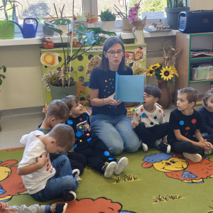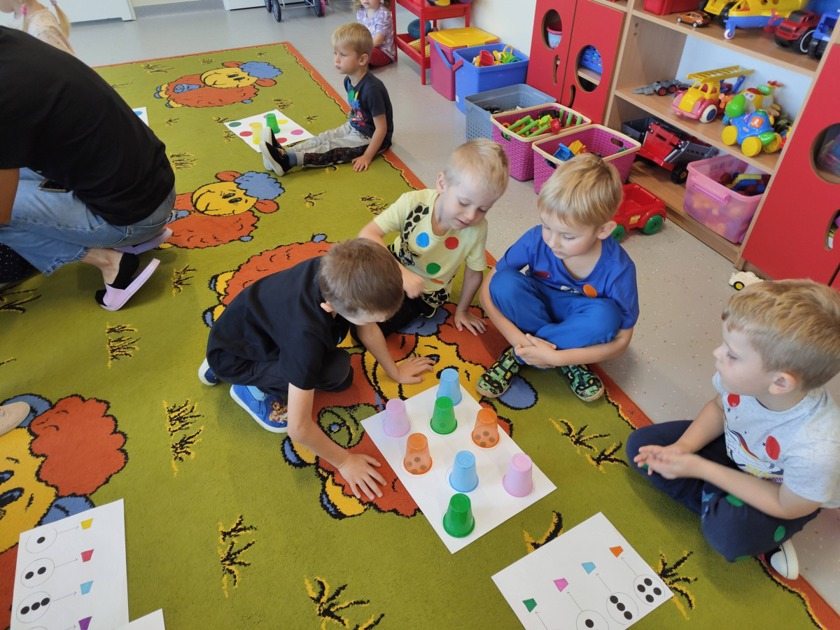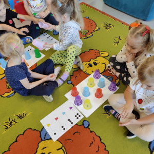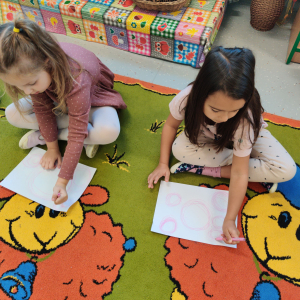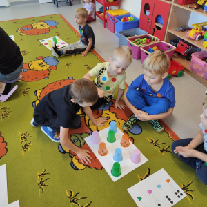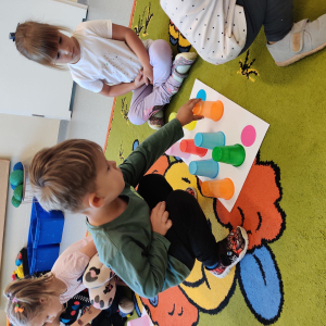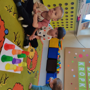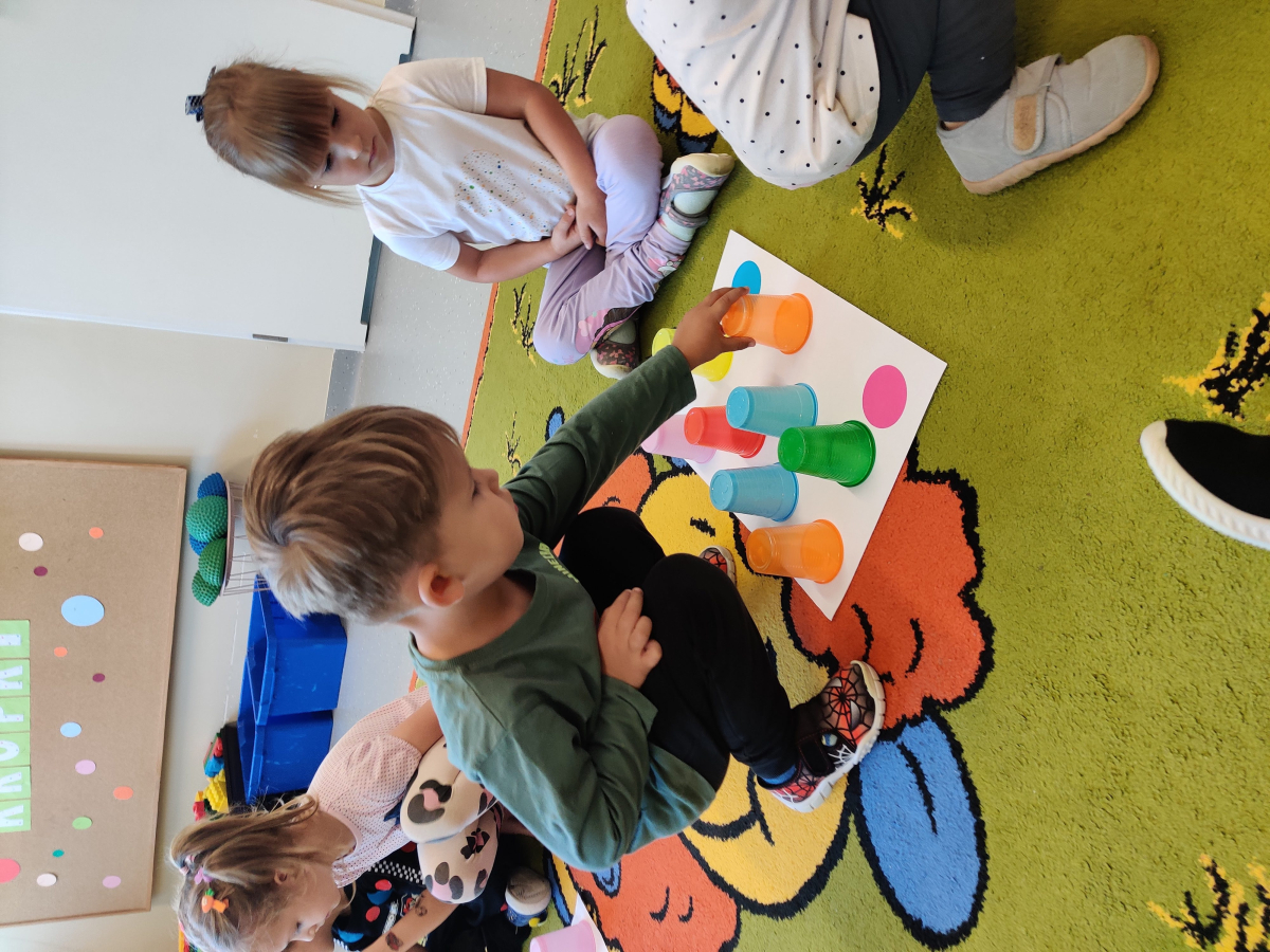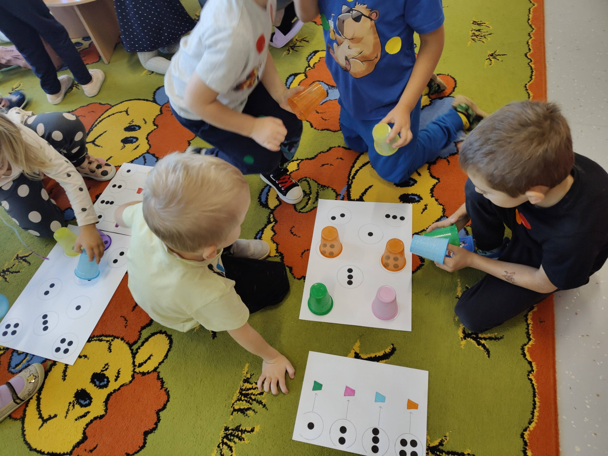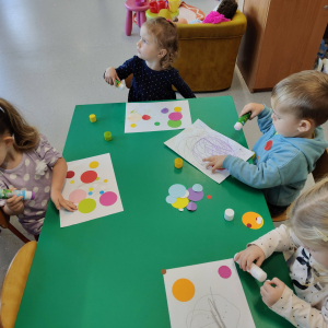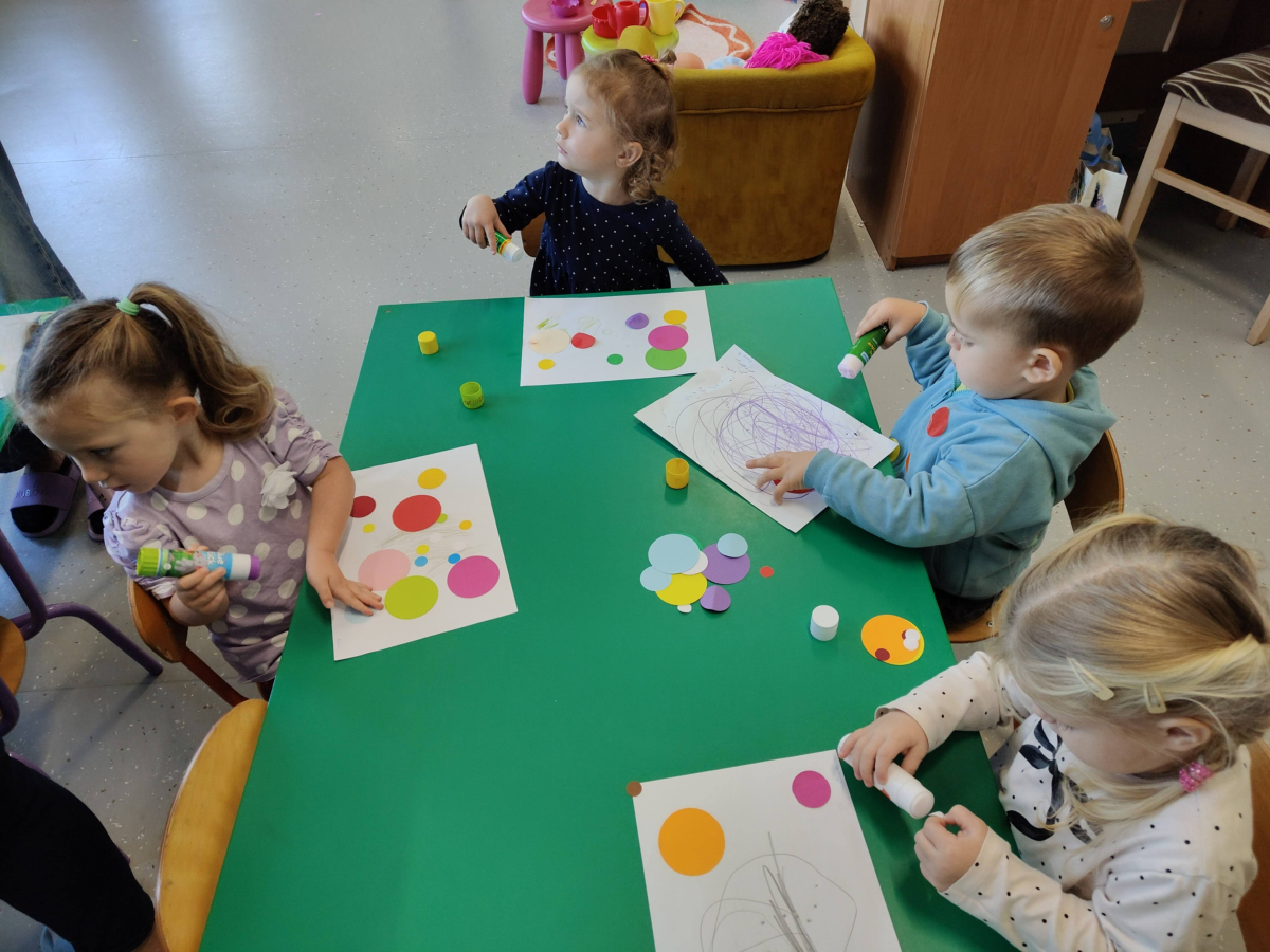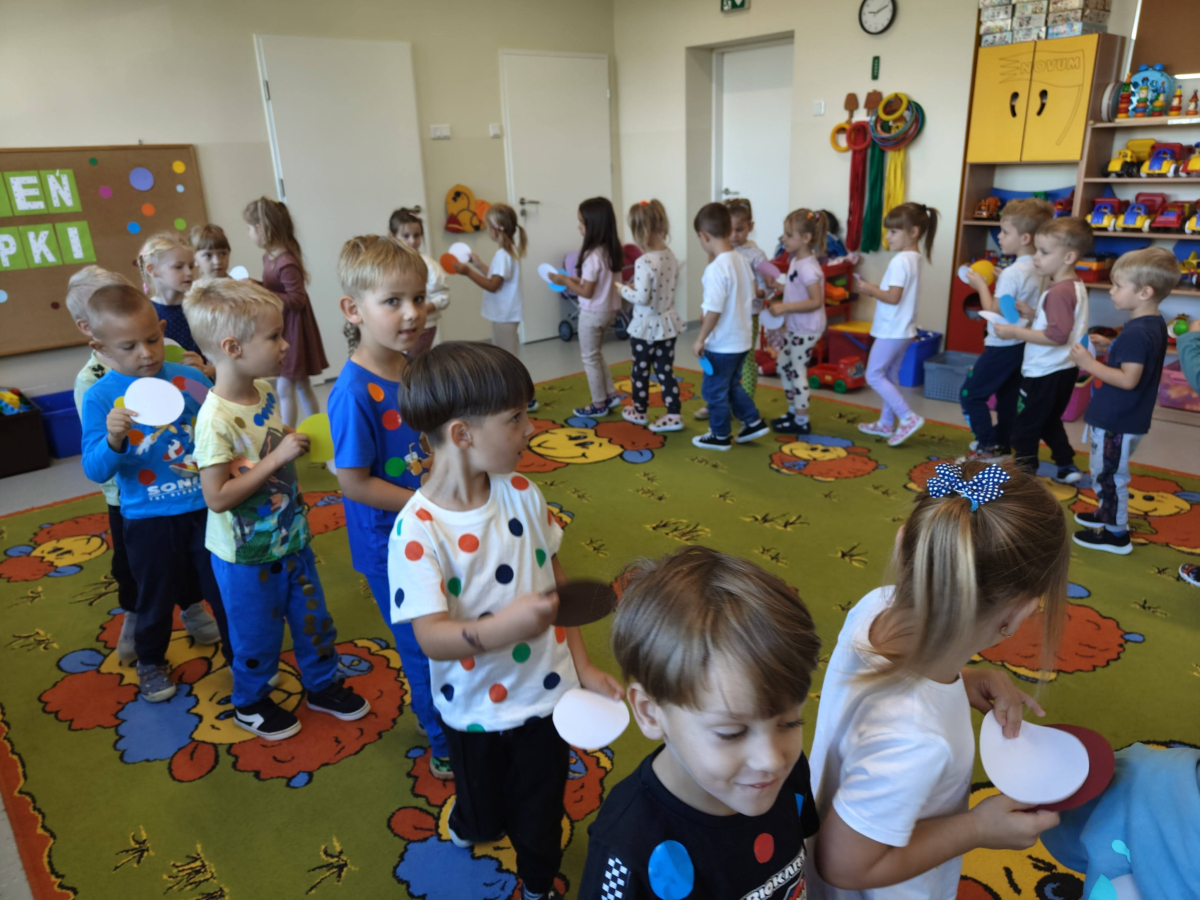 W naszym przedszkolu świętowaliśmy Międzynarodowy Dzień Kropki- wyjątkowe święto kreatywności, odwagi i zabawy. Dzieci rozpoczęły dzień od wspólnego tańca do piosenki “Kropka, kropeczka”. Następnie przedszkolaki z zaciekawieniem wysłuchały opowiadania z książki “Kropka i kreska”, mówiące o przyjaźni, tolerancji i radości z wspólnej zabawy. Po części wprowadzającej dzieci pracowały w grupach. Starszaki zmierzyły się z zadaniem z zakresu kodowania, natomiast młodsze przedszkolaki świetnie się bawiły segregując kubeczki według koloru. Kolejnym etapem było wykonanie pracy plastycznej według metody D. Dziamskiej. Do zabawy włączyliśmy także rodziców. Na korytarzu przygotowaliśmy kartki z kropkami, do których dzieci i dorośli mogli dorysowywać własne pomysły. Wszystkie zadania przygotowane dla dzieci rozwijały kreatywność, logiczne myślenie, doskonaliły umiejętności grafomotoryczne i współpracę w grupie. Był to dzień pełen radości.