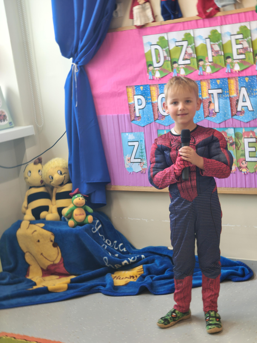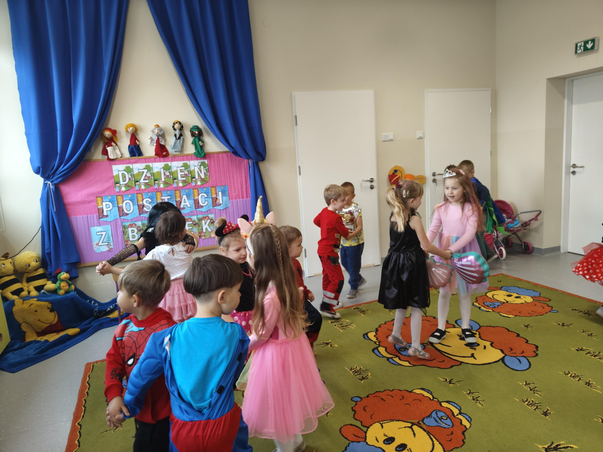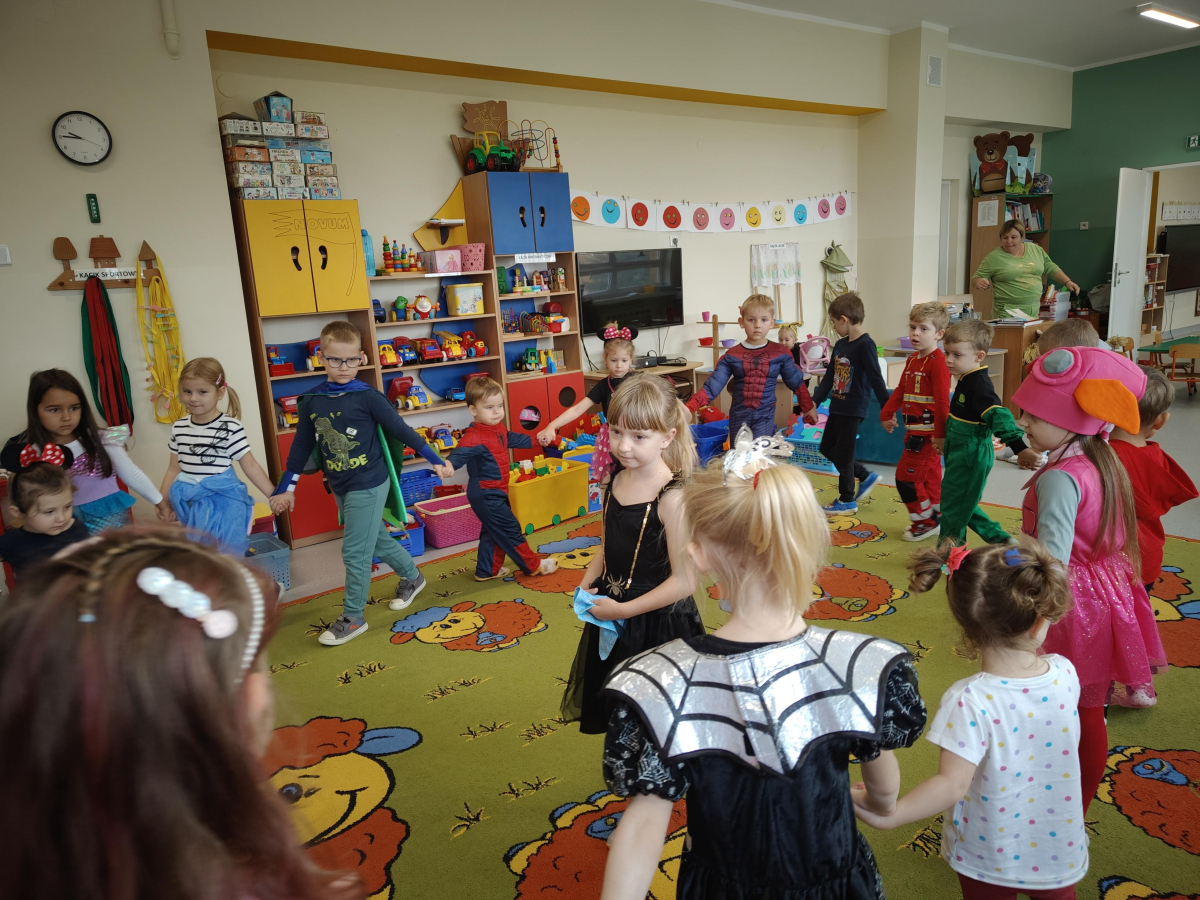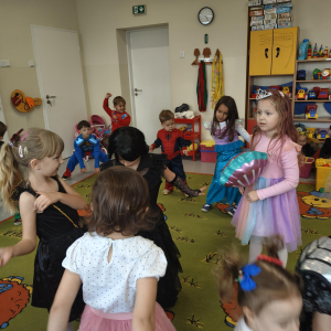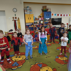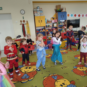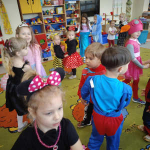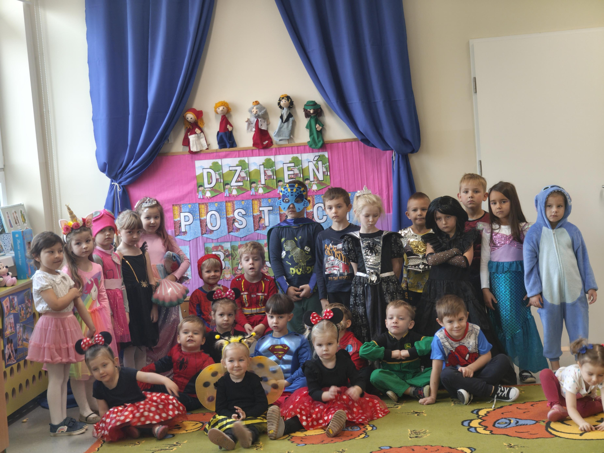 W naszym przedszkolu obchodziliśmy radosny Dzień Postaci z Bajek. Tego dnia dzieci przyszły ubrane w kolorowe stroje swoich ulubionych bohaterów. W sali pojawiły się m.in.: księżniczki, superbohaterowie, wróżki i wiele innych postaci znanych z bajkowych opowieści.