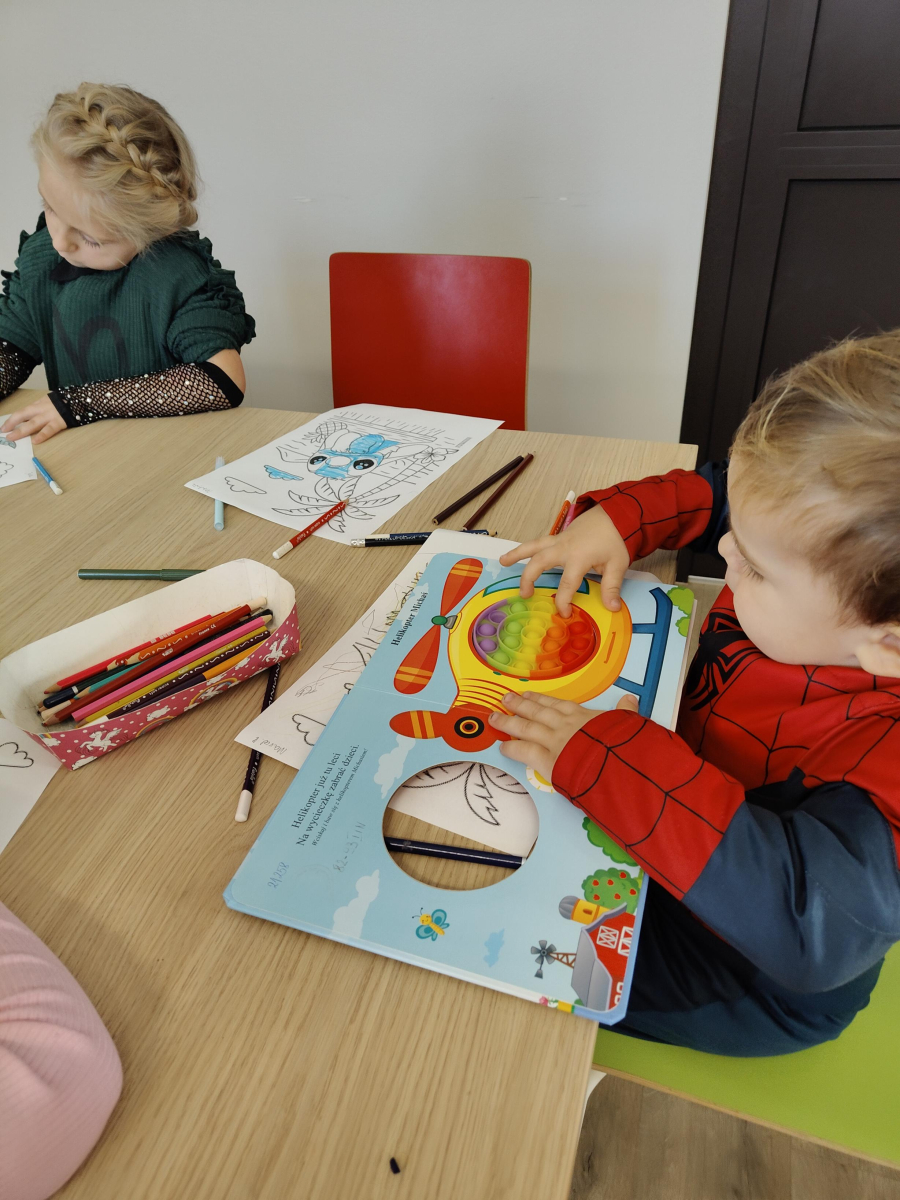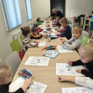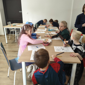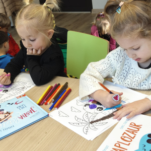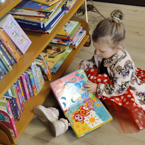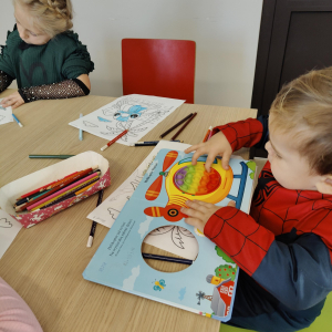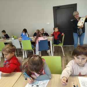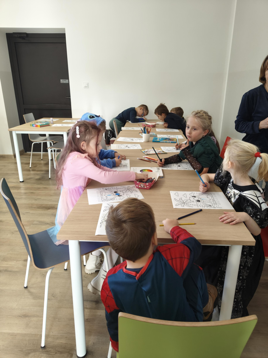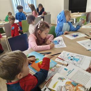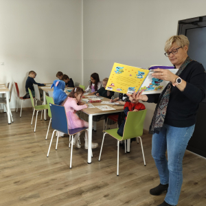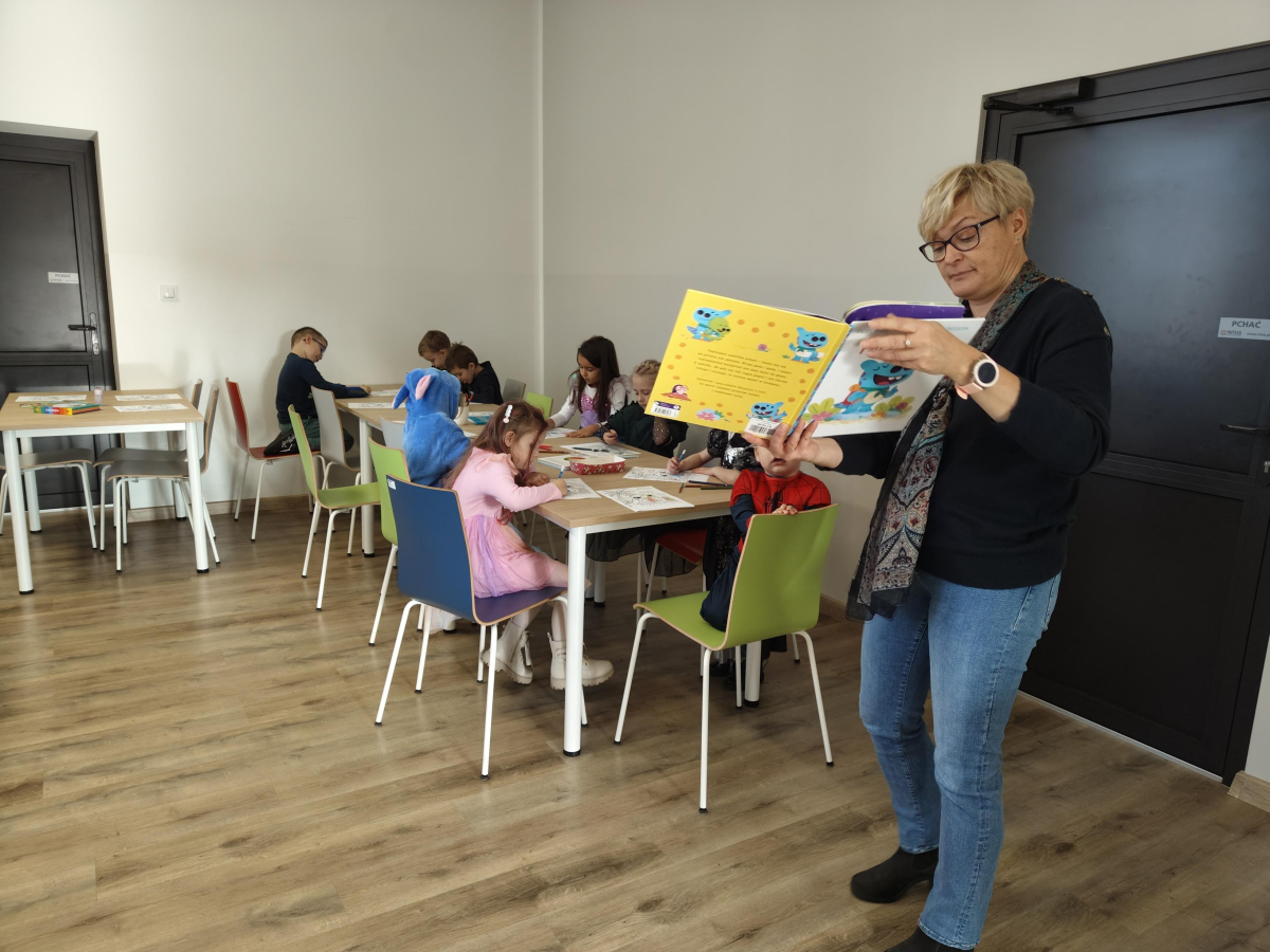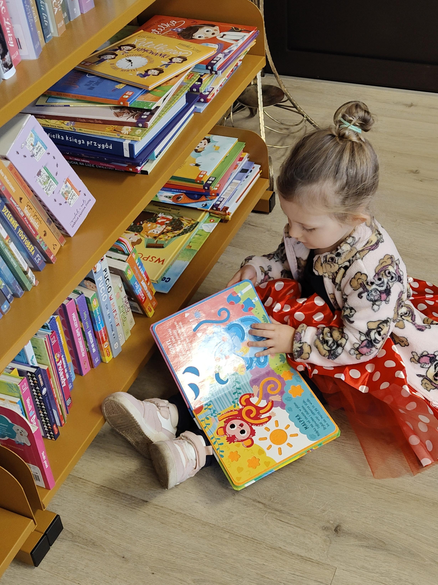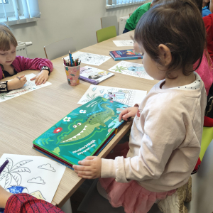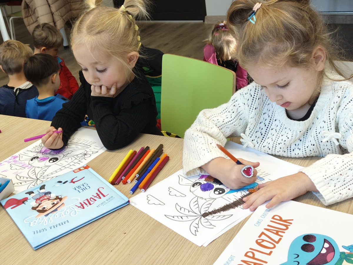 Przedszkolaki brały udział w tematycznych zabawach, między innymi w memory z bohaterami bajek oraz w rozpoznawaniu akcesoriów pochodzących z różnych opowieści. Kolejną atrakcją była wizyta w Bibliotece Publicznej w Uściu Solnym. Pani Bibliotekarka Agnieszka Dobrzańska przeczytała dzieciom bajkę pt.” Lilo i Stich”, która przeniosła je w magiczny świat opowieści. Następnie dzieci kolorowały postaci bajkowe i oglądały nowości książkowe.