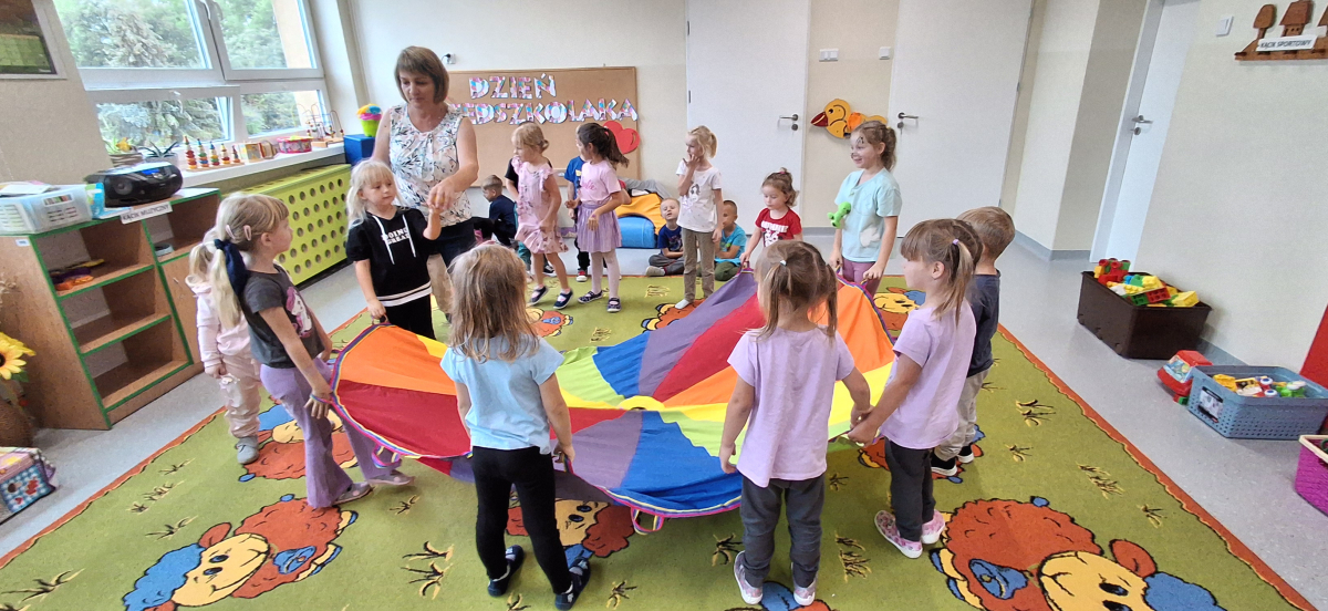 23 września Nasze Przedszkolaki świętowały swój wyjątkowy dzień! Czekało na nie mnóstwo atrakcji: radosne zabawy z chustą animacyjną, taneczne szaleństwo podczas mini-disco, kolorowe malowanie twarzy oraz pamiątkowe zdjęcia w fotobudce. Było głośno, wesoło i bardzo kolorowo! Dzieci bawiły się wspaniale, a ich uśmiechy były najlepszym dowodem na to, że Dzień Przedszkolaka to naprawdę wyjątkowe święto!