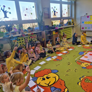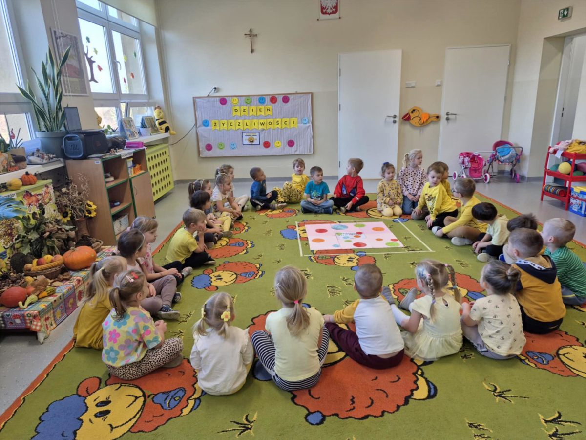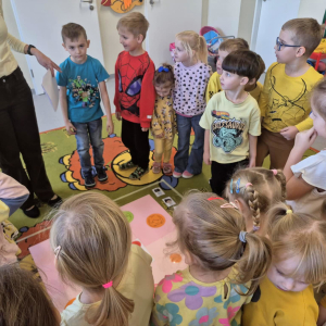 Po rozgrzewce przyszedł czas na rozmowę o tym, czym właściwie jest życzliwość. Przedszkolaki dowiedziały się, że to nie tylko dobre słowa i uśmiech, ale również pomoc innym, dzielenie się i okazywanie szacunku.