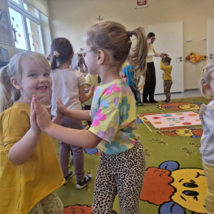 Dzień Życzliwości w naszym przedszkolu, który odbył się 20 listopada 2025 r. był wydarzeniem, pełnym uśmiechu. Już od samego rana dzieci witały się radośnie podczas zabawy muzyczno-ruchowej „Taniec przyklejaniec”, która wprowadziła wszystkich w pogodny nastrój i zachęciła do wspólnej, pełnej energii aktywności.