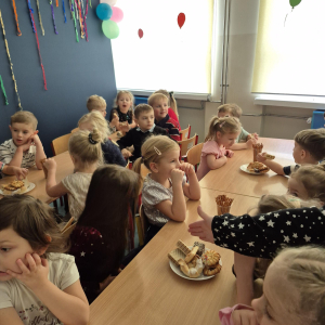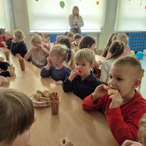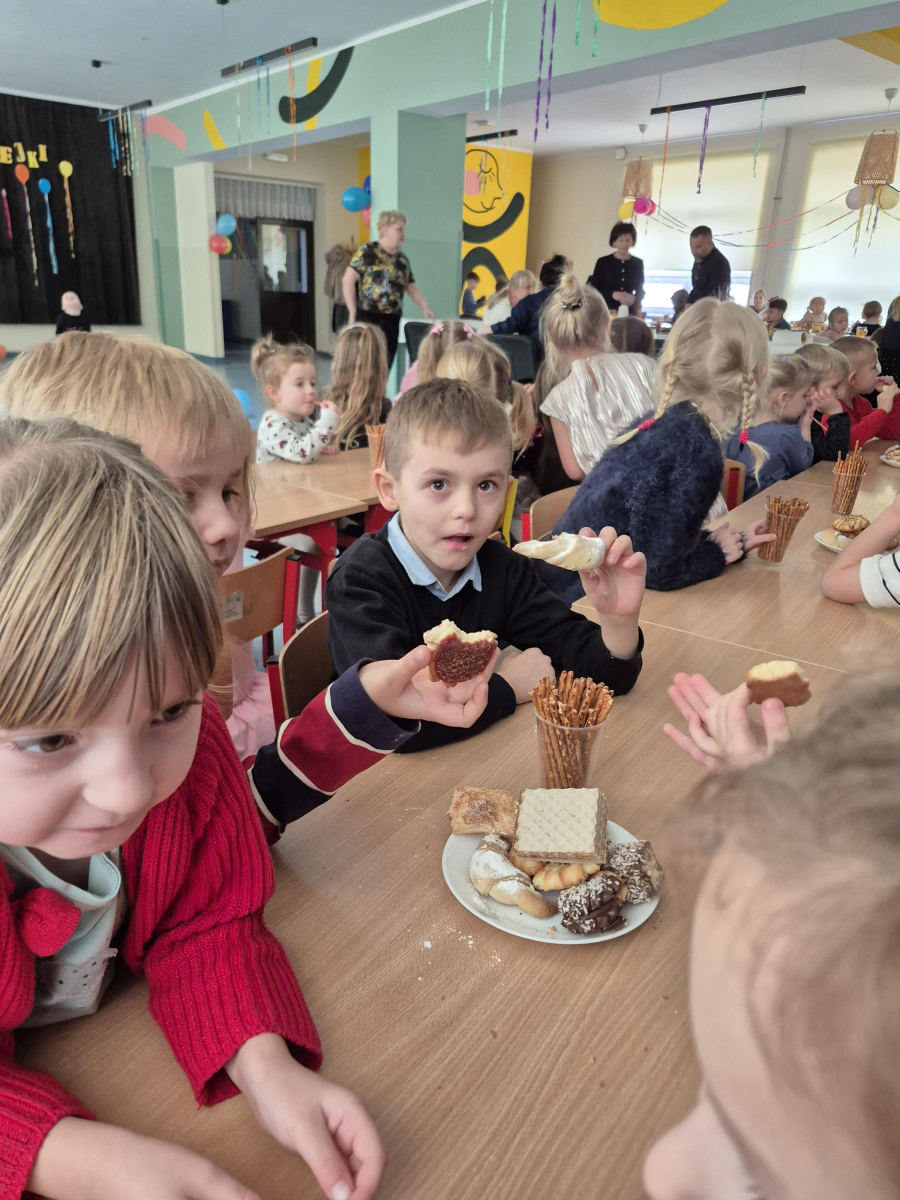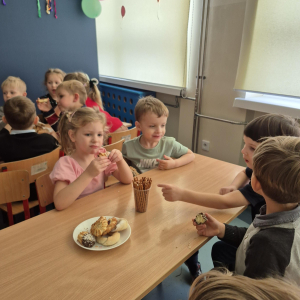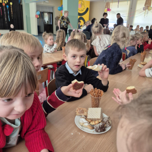 Po pełnych emocji aktywnościach na dzieci czekał pyszny poczęstunek. Największym powodzeniem cieszyły się gorące hot-dogi, które szybko znikały z talerzy.