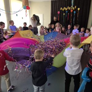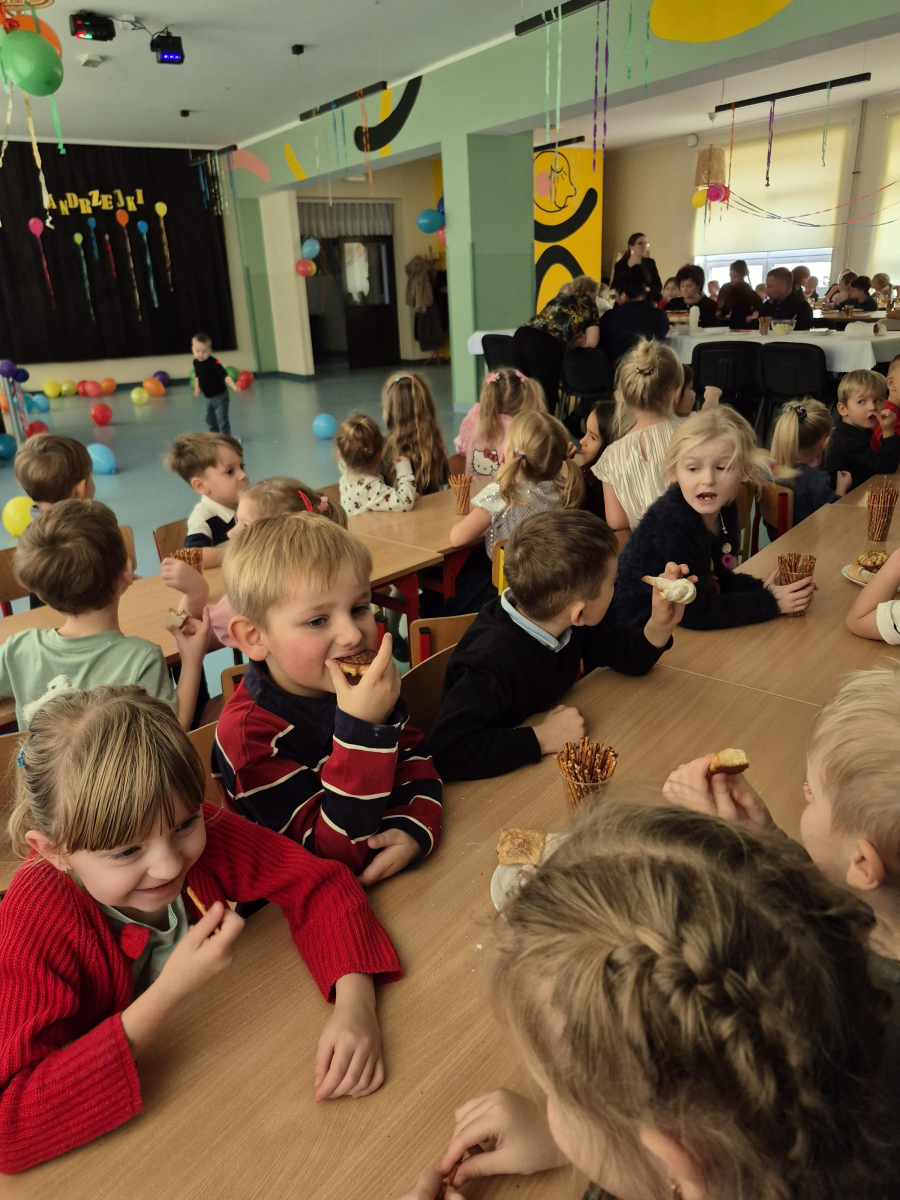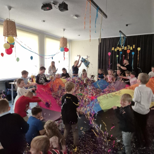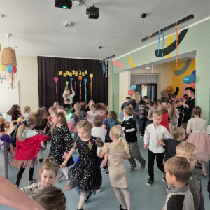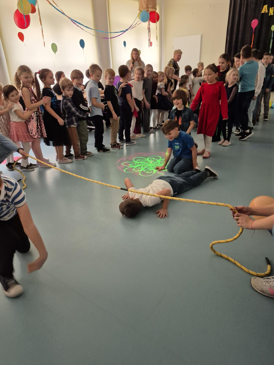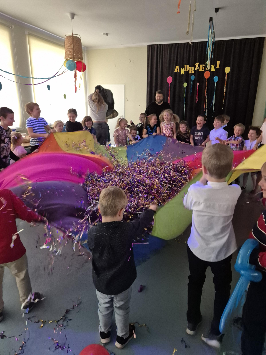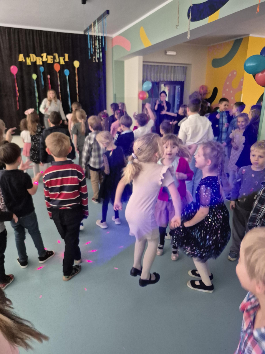 W naszym przedszkolu odbyły się radosne i pełne magii Andrzejki, w których wspólnie bawiły się dzieci z klas I–III. Zabawy prowadzone były przez profesjonalnych animatorów, którzy zadbali o to, aby każdy maluch czuł się zaangażowany i świetnie się bawił. Dzieci uczestniczyły w różnorodnych andrzejkowych wróżbach, śmiesznych konkurencjach oraz grach ruchowych. Nie zabrakło też tańców – wspólna zabawa przy ulubionych piosenkach sprawiła wszystkim ogromną radość.